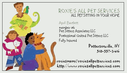 ROXIE'S ALL PET SERVICES WelcomeIf you're like us, your pets have become family members. When you can't be home for them, whether because of work, vacation or other obligations, you want them taken care of with the same love and attention you give them. That's exactly what we do at ROXIE'S ALL PET SERVICES- Because we love pets! ROXIE'S ALL PET SERVICES offers a multitude of services for a variety of pets. We can also handle various home services which, by making it appear that your house is occupied, can be a crime deterrent. Choose the schedule and services you want, and we'll do the rest. Pet services include: